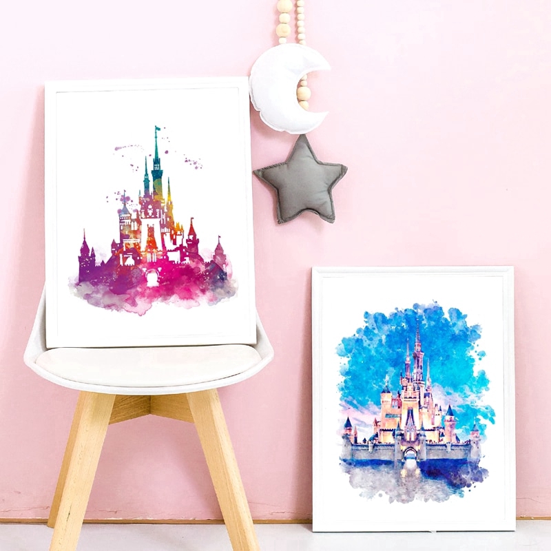 Watercolor Castle Canvas Art Prints And Poster , Princess Castle Canvas Painting Wall Picture Kids Girls Room Decor | Shopee Philippines